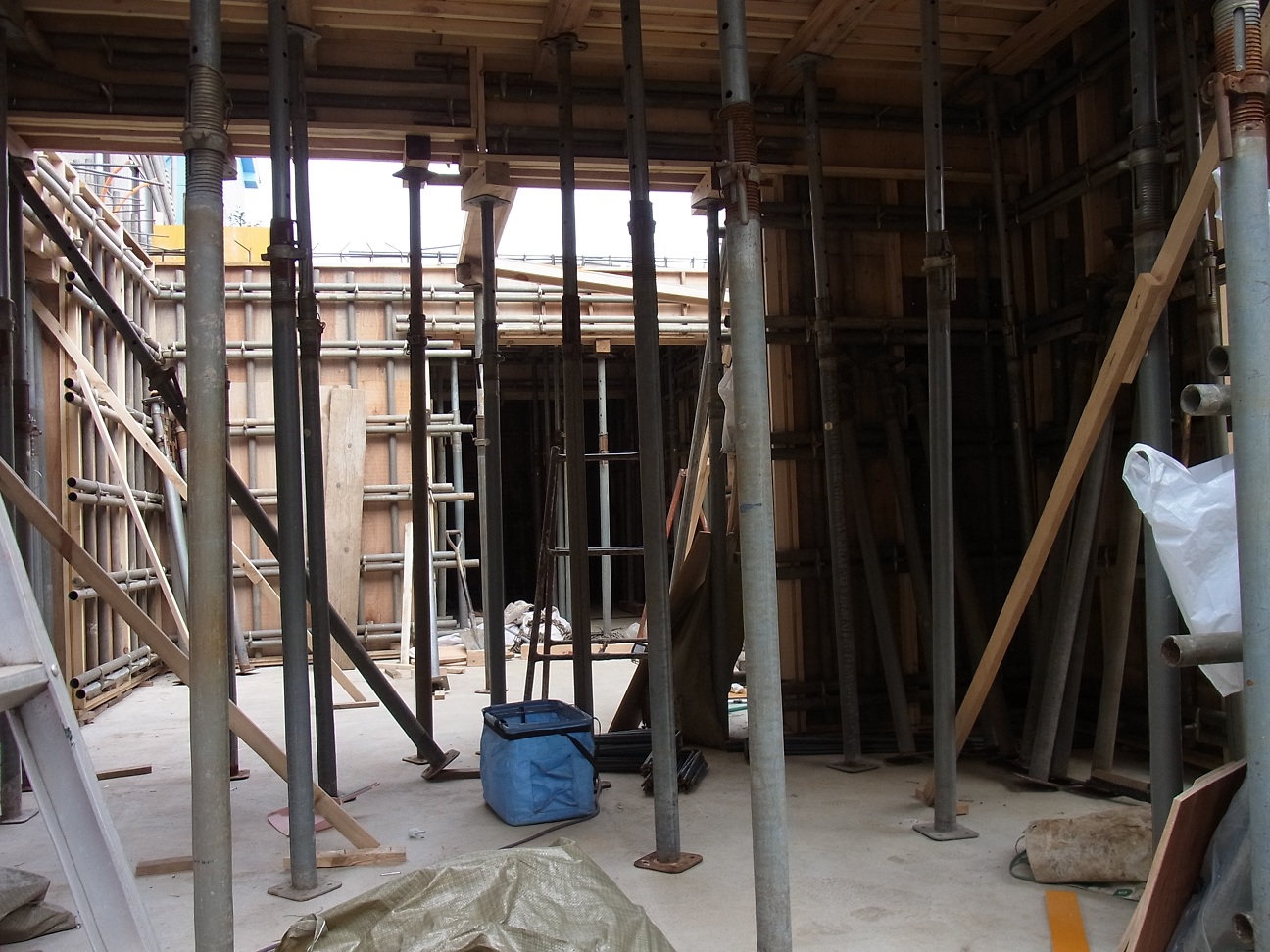 現場では、1階スラブのコンクリートが乾くのを待てず、城に侵入してしまった”男”の靴跡を発見!
