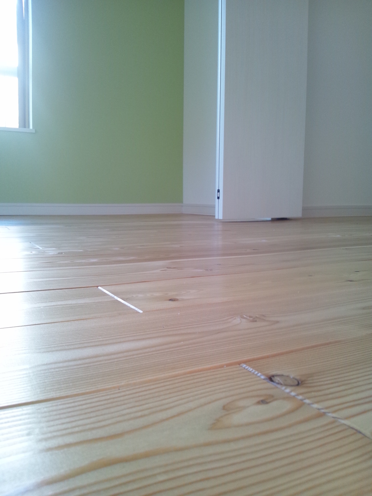 今回、全ての部屋で、ラーチの無垢フローリング(厚み24mm)を初めて採用してみました。