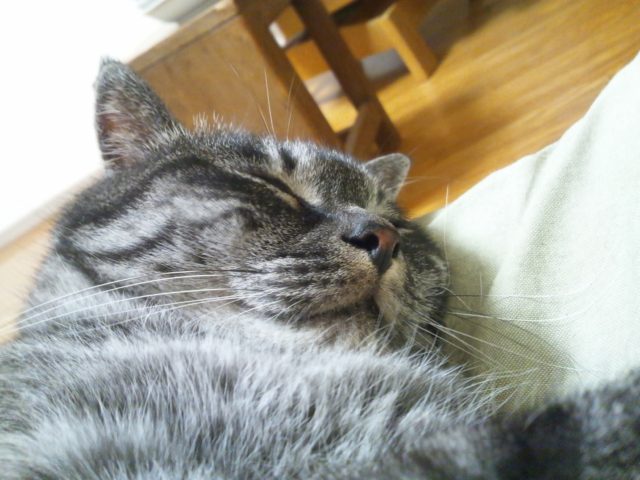 猫のくせにホントに甘ったれで、見えない紐でもついてるのかと思うほど付いて回る子達なので、おかーさんの夏休みに最初ははしゃいでいたけれど、3日間遊び倒して寝不足になり、おまけに大嫌いなシャンプーまでされちゃって、そこはかとなく、「おかーさん、もうお仕事行っていいよ・・・」の気配(笑)。