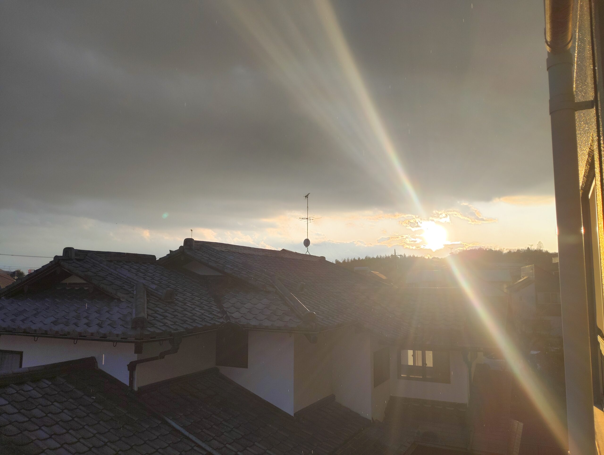 日暮れ前に窓から差し込む光の強さが変わり、部屋の中が春の夕方の色になりました。