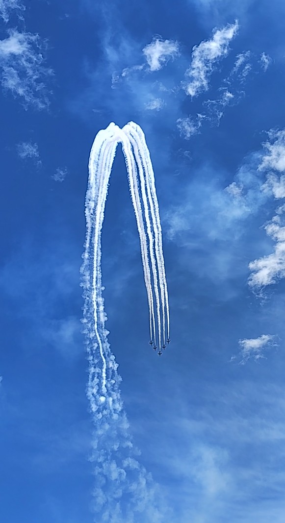 実家に住んでた頃は、庭先に出て空を眺めていれば見ることができた航空ショー。